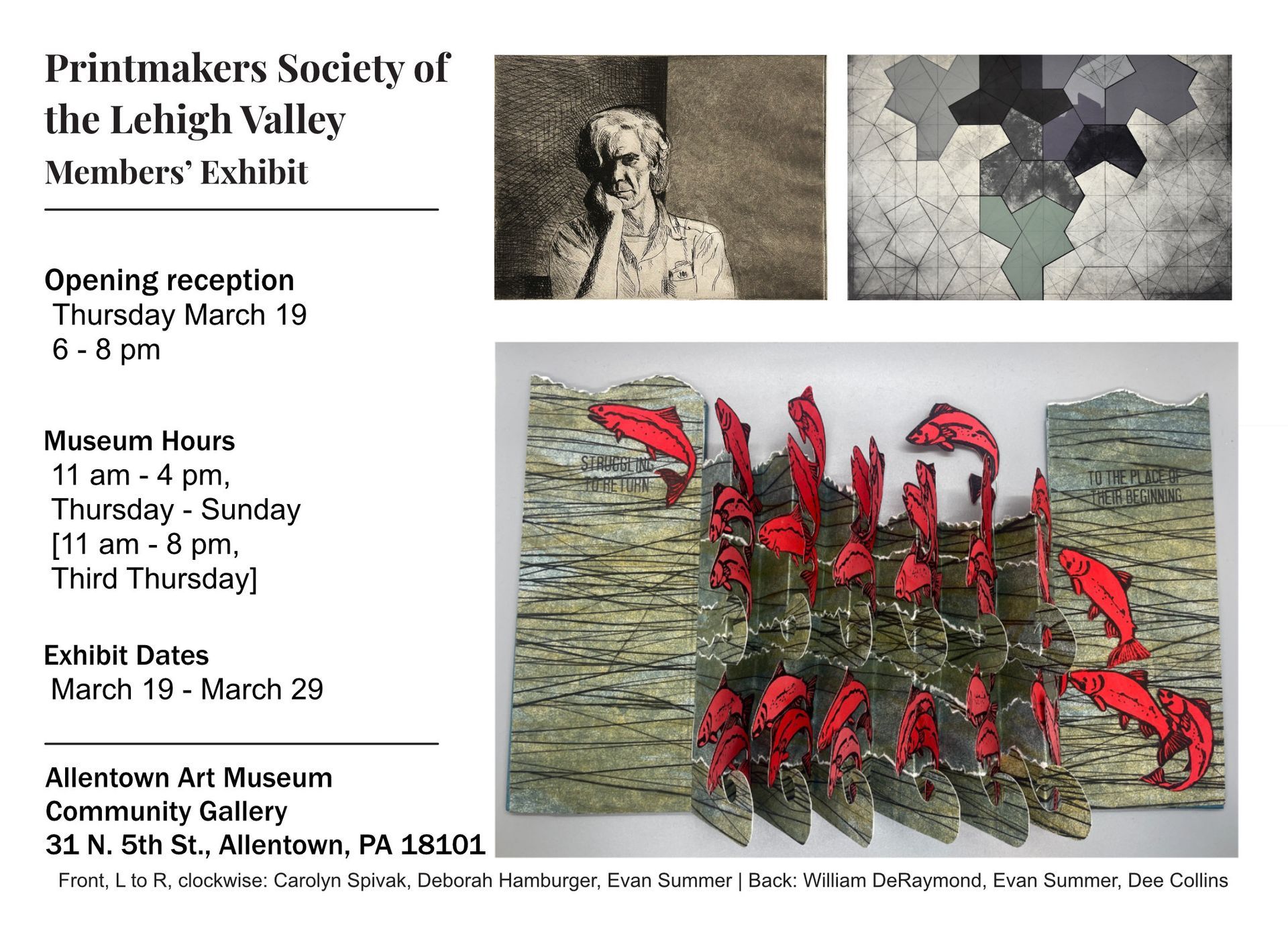 Opening soon! Our first member's show of 2026 and our first ever show at the Community Gallery of the Allentown Art Museum! Opening reception Thursday, March 19, 6-8 pm; all are welcome. See museum hours on image above. For reference, prospectus and details are here.